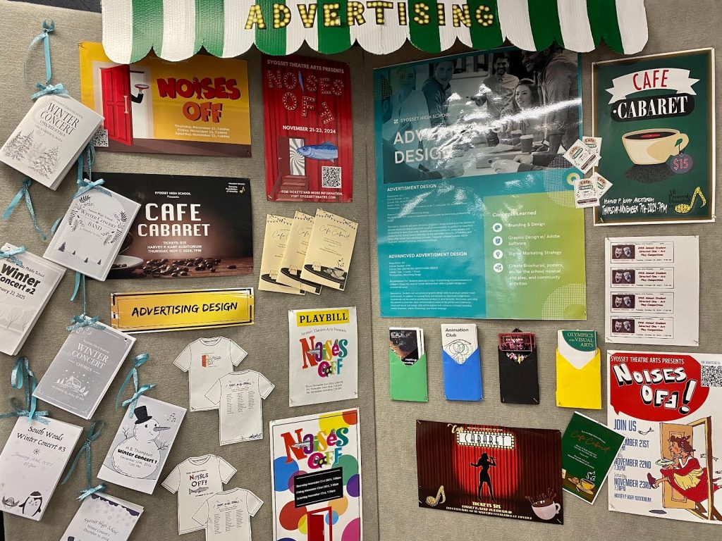Whether your interests lie in photography or art history, Syosset High School has the class for you. Beginning on January 27, the art department set up a mini-fair in the cafeteria (later moved to AR hall) that featured the variety of art classes Syosset provides. Panels featured works from Syosset’s 29 visual art, six theatre, and five photography classes. QR codes linked to the new Syo Arts webpage were set up at each display.
