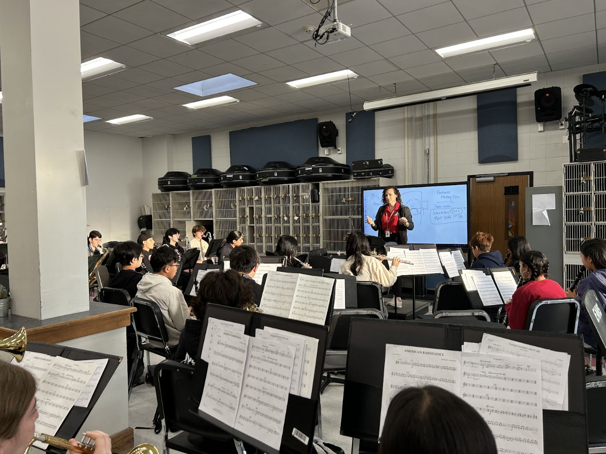 The music department welcomed two new teachers. In the band program, Ms. Molly Tittler-Ingoglia is currently teaching ninth grade Band, Symphonic Band, and Brass Ensemble. Not only is she a multitalented musician, playing almost all brass instruments (but favoring the french horn and trumpet), she also has a wealth of experience, having taught in East Meadow, Hicksville, and having worked as an outside consultant for various marching bands. While this is Ms. Tittler-Ingoglia’s first time teaching at a larger school like Syosset, she said, “students are the ones that generate all excitement and interest, with teachers only intervening when needed. The posters and signs filling up the hallways are proof of that.”